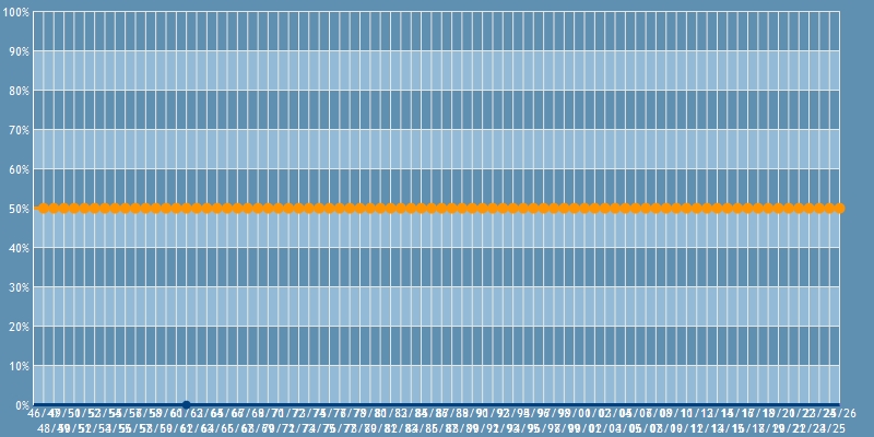 | 1961/1962 | | | 0 av 2 | 0.00% | | 0.00% | 0.00% | | 50.00% | -50.00% |